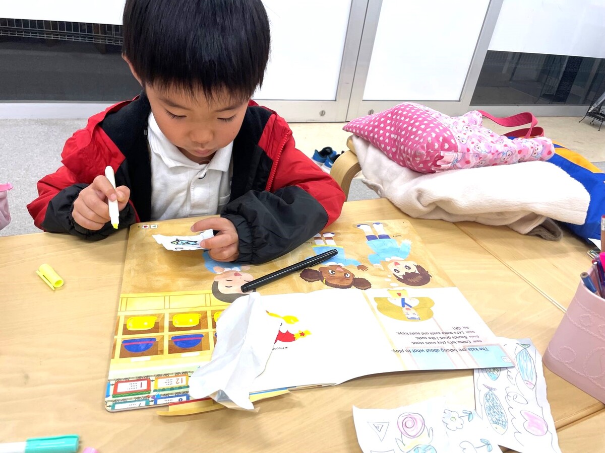 実際に、紙を切ったり、折ったり、描いたり、塗ったりしながら練習しました。